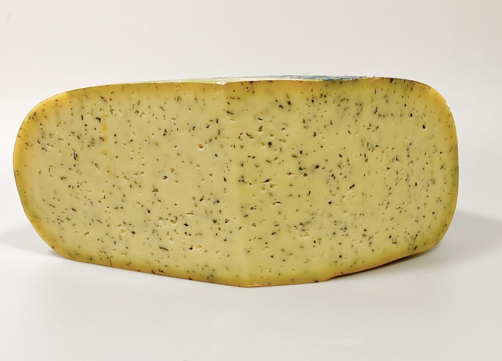Köstlicher Käse mit Knoblauch, Schnittlauch und Sellerie. Hergestellt in Tijnje auf der Käsefarm De Deelen. Milder, frischer und leicht würziger Geschmack.